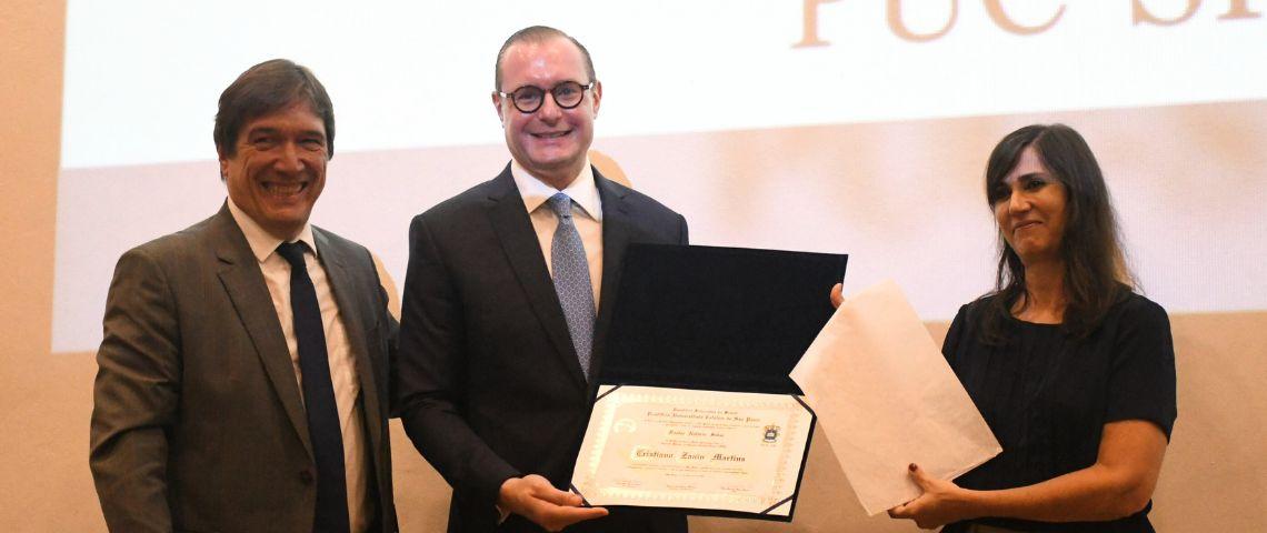 “Falar das qualidades e dos méritos do professor Zanin é quase uma redundância. Então, gostaria de ressaltar dois pontos de sua trajetória: a humildade e a coragem. Ambas características que o fizeram ser tão importante em fatos relevantes que marcaram profundamente a história recente de nosso país. Em nome da PUC-SP, digo que estamos muitíssimo orgulhosos de reconhecer, mais uma vez, uma de suas inúmeras qualidades que é a robustez acadêmica”, afirmou o reitor.