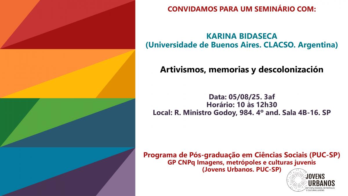 A atividade acontece dia 5/8, das 10 às 12h30, na sala 4B-16 (4º andar, prédio novo). Promoção: Grupo de Pesquisa Imagens, Metrópoles e Culturas Juvenis (Jovens Urbanos), do Pós em Ciências Sociais.