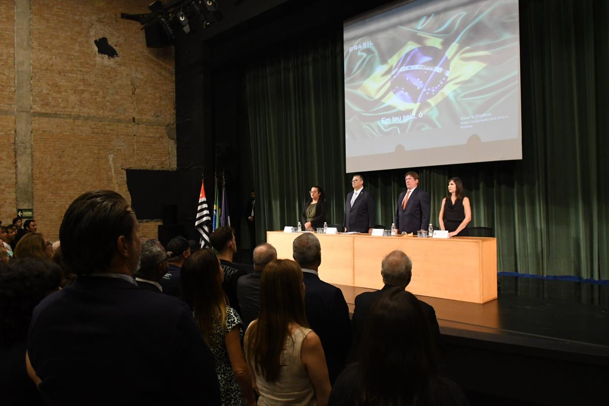 Além do ministro, a mesa diretora dos trabalhos contou com a presença do reitor Vidal Serrano Nunes Jr., a vice-reitora Carla Reis Longhi e a presidente do Centro Acadêmico 22 de Agosto Laís Hera.