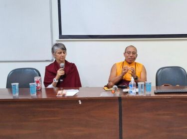 Consciência e interdependênciaDurante a palestra, Dorje destacou a importância de uma visão ampliada da saúde, que considere os contextos físicos, emocionais e mentais. “Pouca gente cuida da saúde mental e emocional. A saúde física interfere na emocional e vice-versa”, lembrou. A mente, segundo ele, tende a vagar entre passado e futuro, raramente permanecendo no presente — o que, somado à ausência de consciência, gera sofrimento e desequilíbrio. “Uma mente não purificada leva a aflições, afeta a nós mesmos, nossas relações e toda a vida na Terra.”