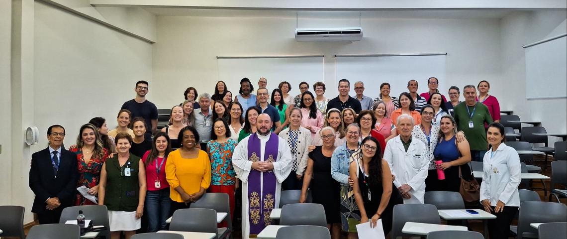 O coordenador da Pastoral Universitária da PUC-SP, Padre Rodrigo Vilela da Silva, celebrou no dia 15/12 uma missa de Ação de Graças pelo ano de 2025 no campus Sorocaba. A cerimônia reuniu diretores, docentes e funcionários da Faculdade de Ciências Médicas e da Saúde (FCMS) e do Hospital Santa Lucinda (HSL).