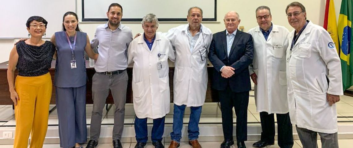 Na manhã de 13/2, a Faculdade de Ciências Médicas e da Saúde (FCMS) recebeu o prof. Coríntio Mariani Neto, da Universidade Cidade de São Paulo (Unicid), para a aula inaugural de Obstetrícia. Com vasta experiência – ele foi diretor técnico durante 36 anos no Hospital Maternidade Leonor Mendes de Barros e é membro da Comissão Nacional de Aleitamento Materno da Febrasgo –, o professor lecionou para alunos do 5º e 6º ano de Medicina, residentes e docentes da FCMS.