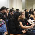 Também na mesa de abertura, a profa. Juliana ressaltou o envolvimento de docentes e estudantes para a realização do evento. “Dá muito trabalho, mas sempre vale muito a pena”, agradeceu. “É sempre uma atividade inspiradora para todos nós, porque vemos o fruto do nosso trabalho por meio das histórias dos egressos e porque propiciamos aos atuais alunos conhecerem muitas possibilidades de atuação profissional”, conclui a docente.