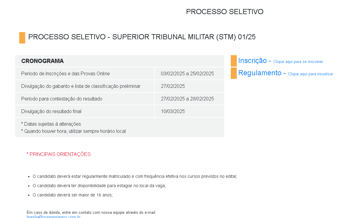 O Superior Tribunal Militar e Auditorias informa que estão abertas vagas de estágio para estudantes de Administração.