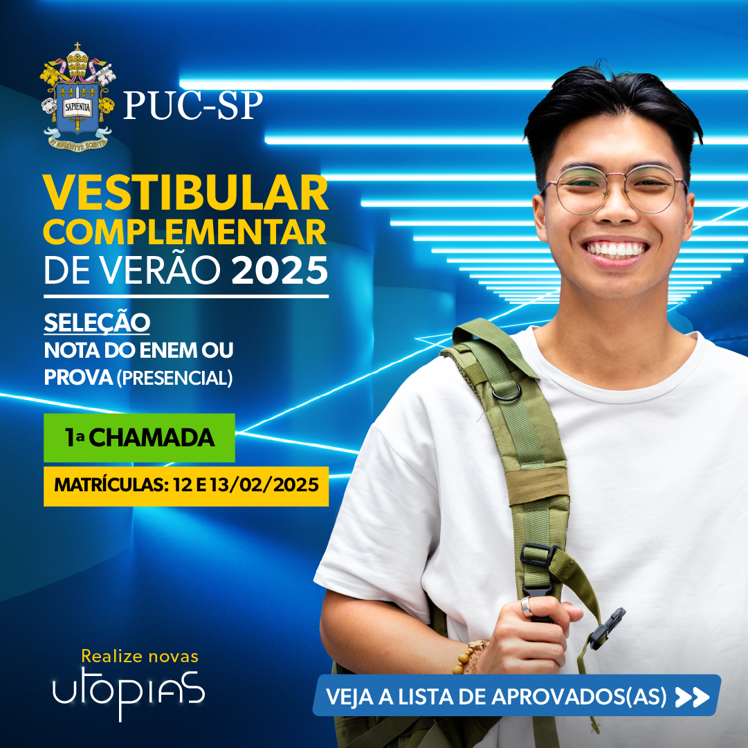 Já está disponível a lista dos aprovados na 1ª chamada do Vestibular Complementar de Verão 2025 da PUC-SP - ENEM e Prova Presencial.
