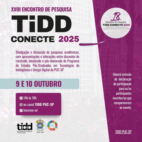 Nos dias 9 e 10 de outubro, acontece o XVIII Encontro de Pesquisa – TIDD Conecte 2025, em formato on-line e gratuito.