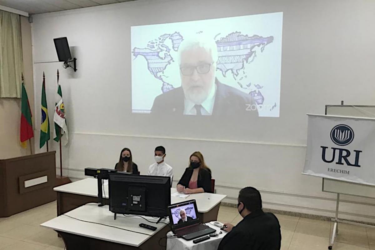 Além de docentes, estudantes de dez faculdades de Direito do Brasil, entre as quais a PUC-SP, integraram a atividade, realizada em 28/10, pelo Teams. Os alunos foram orientados por seus professores para atuar como delegados dos países membros do Conselho de Segurança da ONU.
