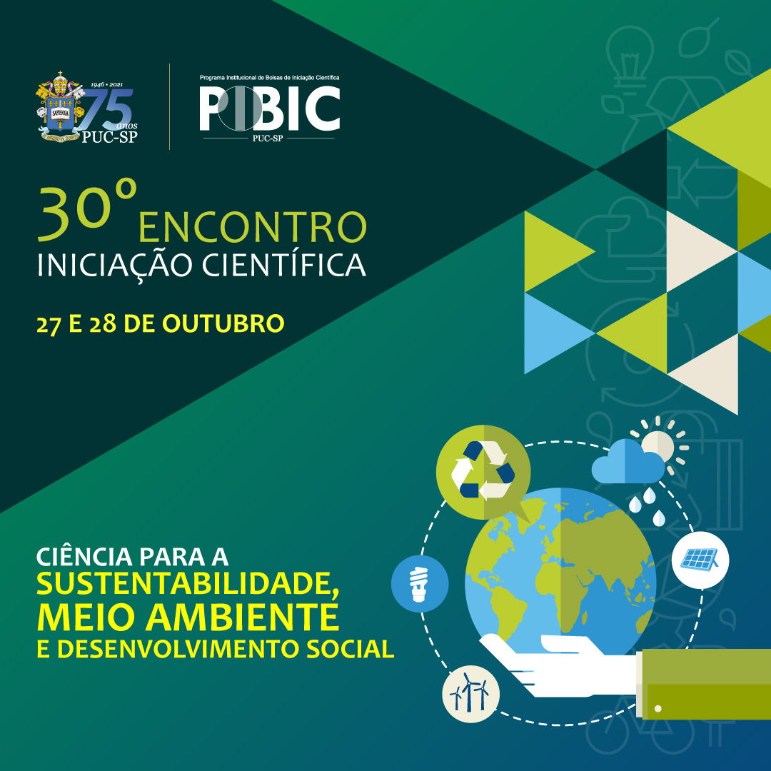 Dias 27 e 28/10, a PUC-SP realiza o 30º Encontro de Iniciação Científica, com o tema Ciência para a Sustentabilidade, Meio Ambiente e Desenvolvimento Social. Clique aqui para assistir.