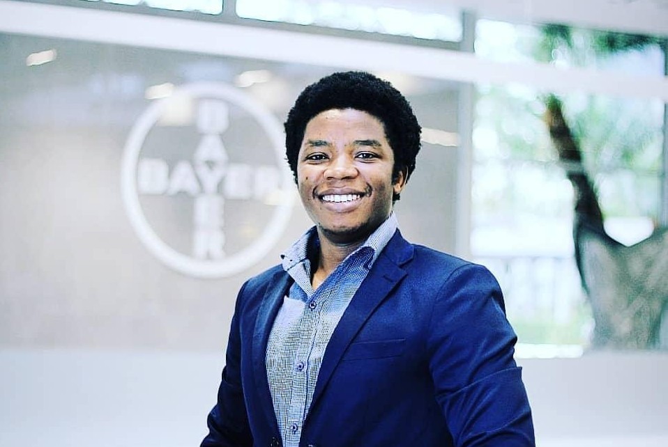 John Mwangi é estagiário da Bayer e sua história foi escolhida pela empresa para fazer parte da exposição