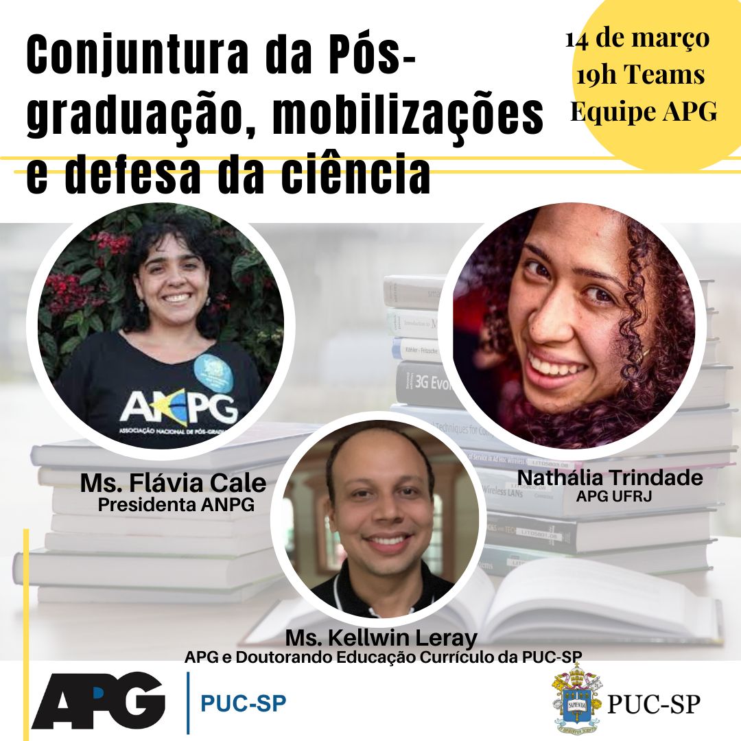 - 14/3 (segunda), às 19h - Conjuntura da Pós-graduação, mobilizações e defesa da ciência