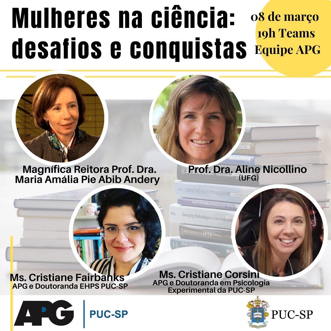 - 8/3 (terça), às 19h - Mulheres na ciência: desafios e conquistas