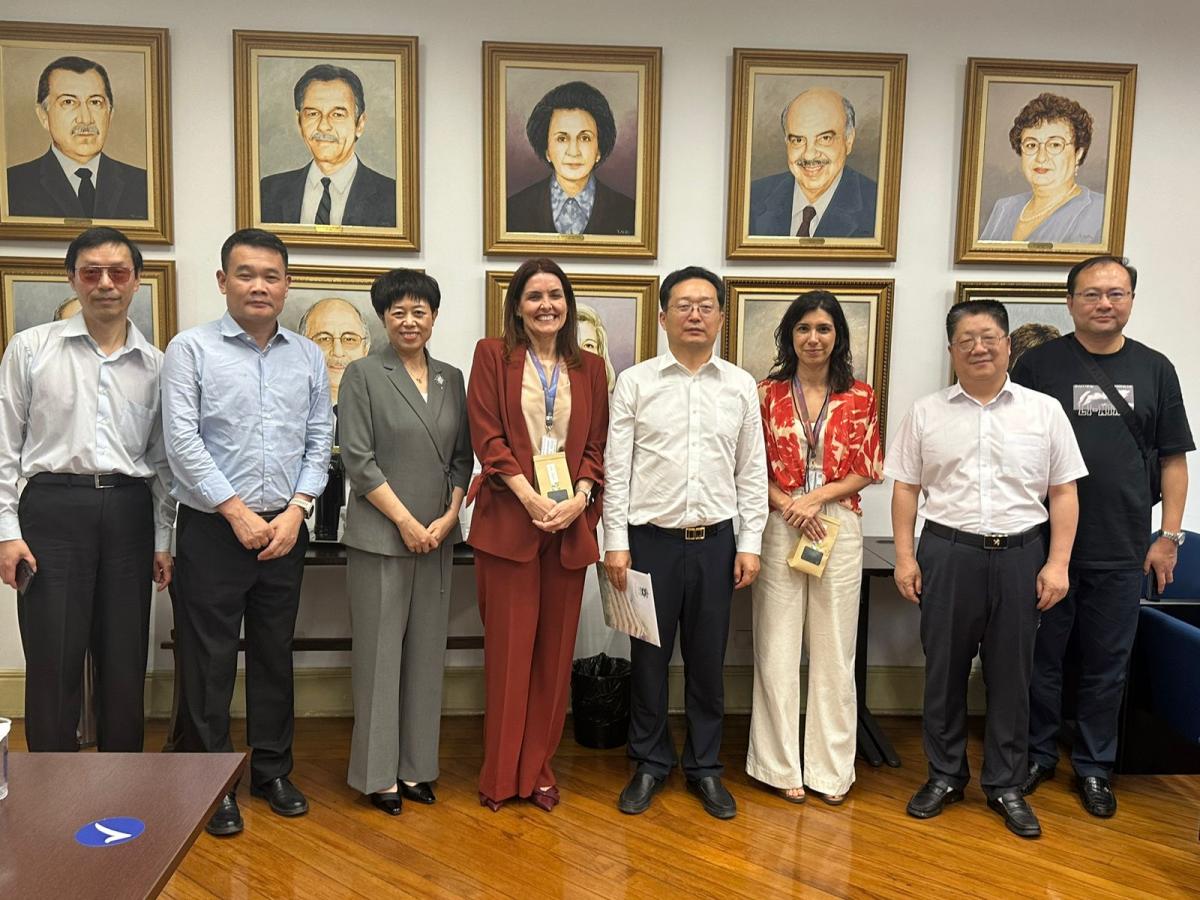 As profas. Terra Budini (Relações Internacionais e assessora pró-tempore da ARII) e Clarisse Laupmann (Direito e assistente especializada da Pró-Reitoria de Educação Continuada) receberam no dia 5/8, uma delegação de juízes chineses, liderada pelo vice-secretário e vice-presidente da Corte Superior da Província de Shandong, o sr. Fu Guoqing, além de alguns juízes de cortes intermediárias.