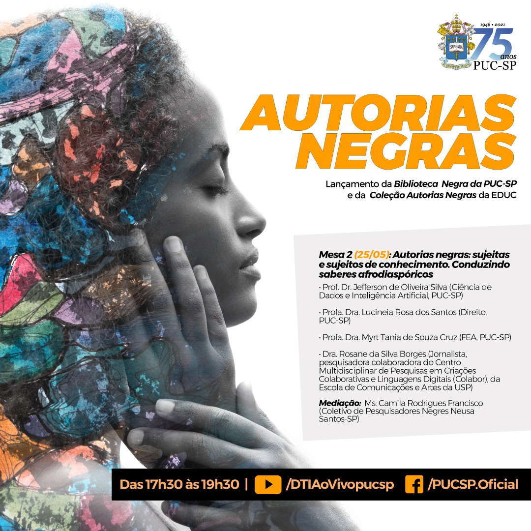 O evento de lançamento da Biblioteca Negra da PUC-SP e da Coleção Autorias Negras, da Educ (Editora da PUC-SP) segue neste dia 25/5. A programação pde ser vista na imagem abaixo. Para assistir, clique aqui ou acesse o facebook da PUC-SP.