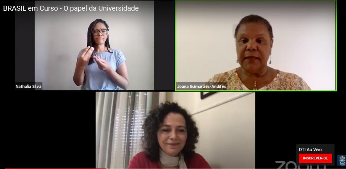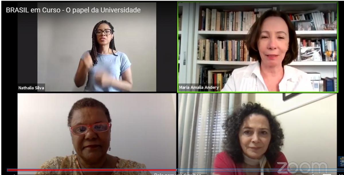 O Brasil em Curso, evento gratuito e online, promovido pela PUC-SP desde 15/9, chegou ao fim na tarde desta terça-feira (27/10), reunindo três reitoras de universidades brasileiras. Maria Amalia Andery (PUC-SP), Soraya Soubhi Smaili (Unifesp) e Joana Guimarães Luz (UFSB), que discutiram o tema “O papel da Universidade’.