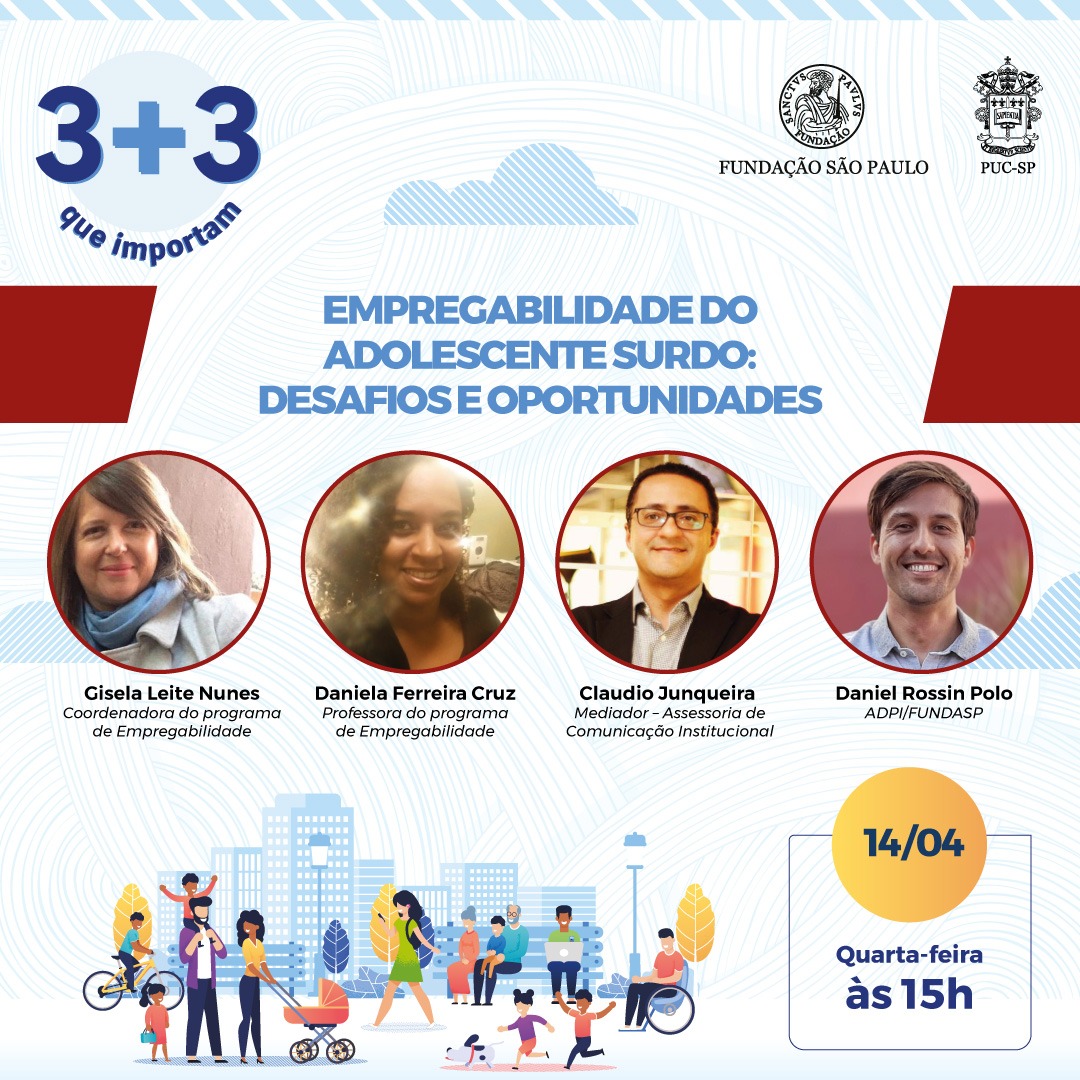 Nos dias 12 e 19/4, às 15h, a Campanha 3+3 que importam realiza duas lives para apresentar projetos que podem ser beneficiados por contribuintes que queiam aplicar parte de seu Imposto de Renda devido em projetos sociais realizados pela PUC-SP.