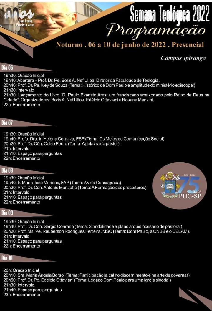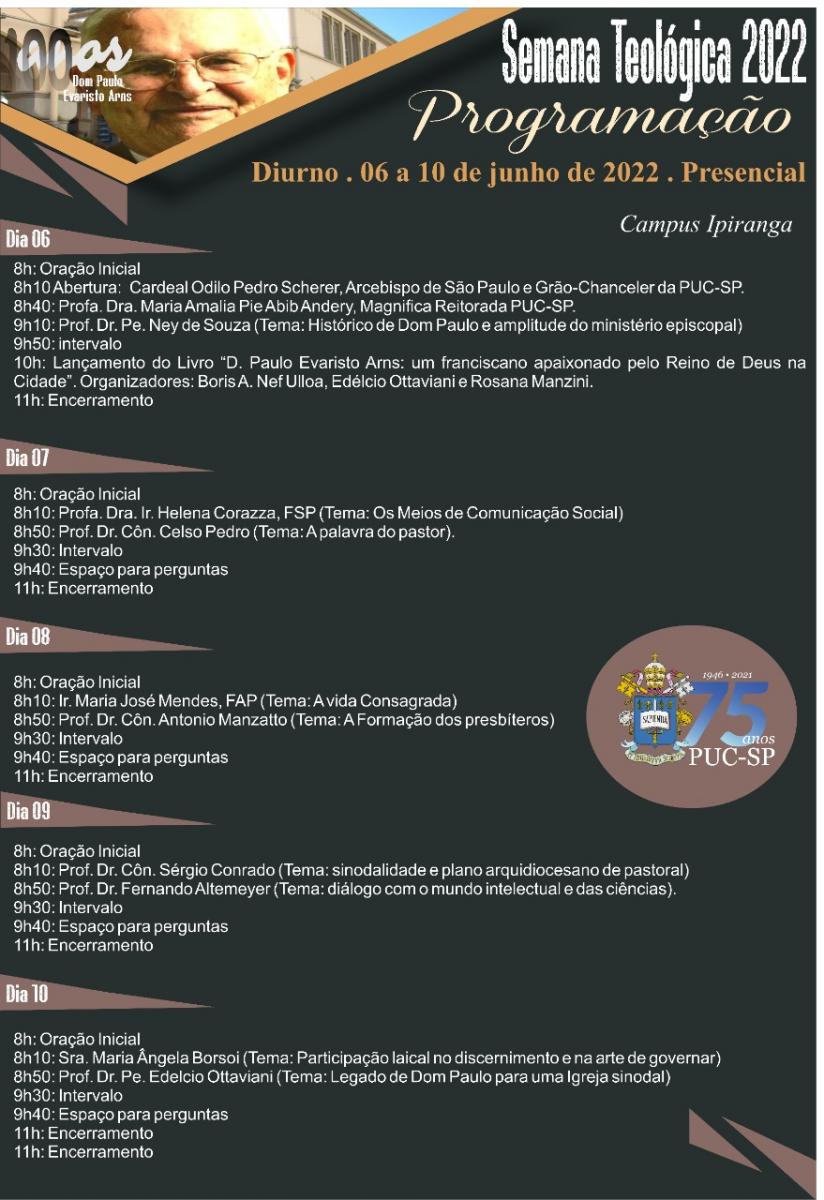Durante as sessões de abertura do evento, a Educ lança, às 10h e às 21h30, a obra Dom Paulo Evaristo Arns: um franciscano apaixonado pelo Reino de Deus na Cidade. O livro é organizado pelos docentes Pe. Boris Agustín Nef Ulloa, Pe. Edelcio Ottaviani e Rosana Manzini (todos da Fac. de Teologia) e teve apoio do PIPEq.