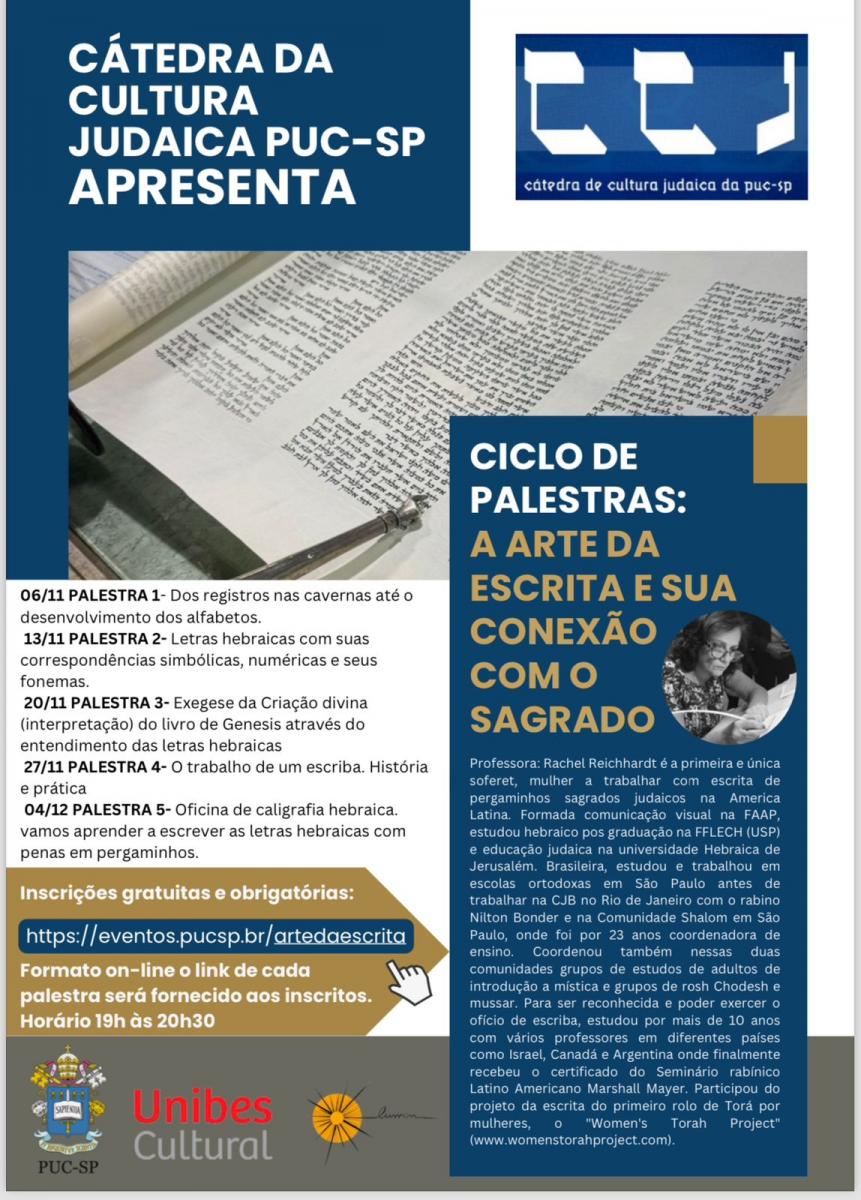 A Cátedra da Cultura Judaica da PUC-SP apresenta o ciclo de palestras A arte da escrita e sua conexão com o sagrado.