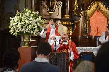 A capela do campus Monte Alegre recebeu o celebrante Dom Carlos Lema Garcia, bispo auxiliar de São Paulo e Vigário Episcopal para a Educação e a Universidade, a reitora Maria Amalia Andery e muitos outros integrantes da comunidade universitária.