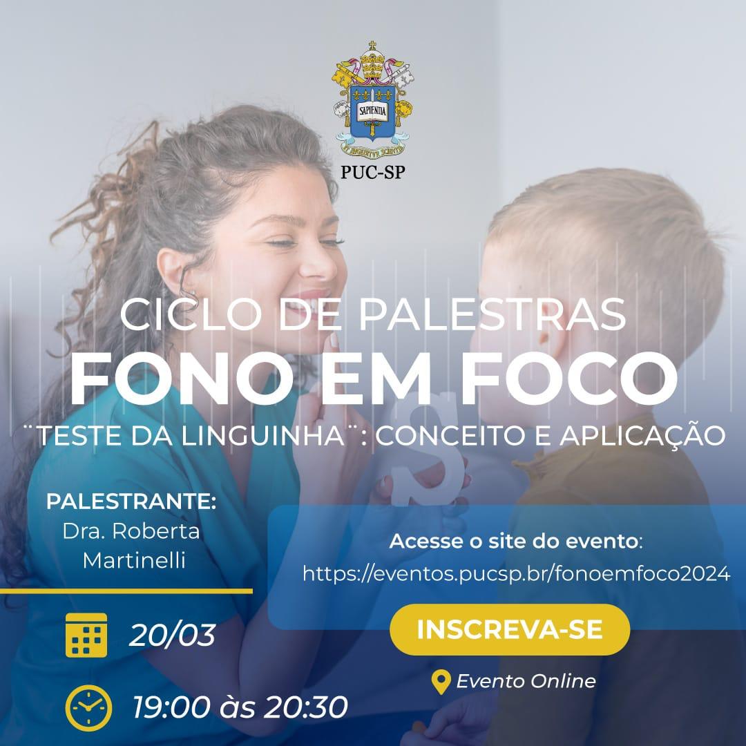 O Ciclo de Palestras Fono em Foco promove uma atividade por mês. Acompanhe a programação no site de eventos. Clique aqui.