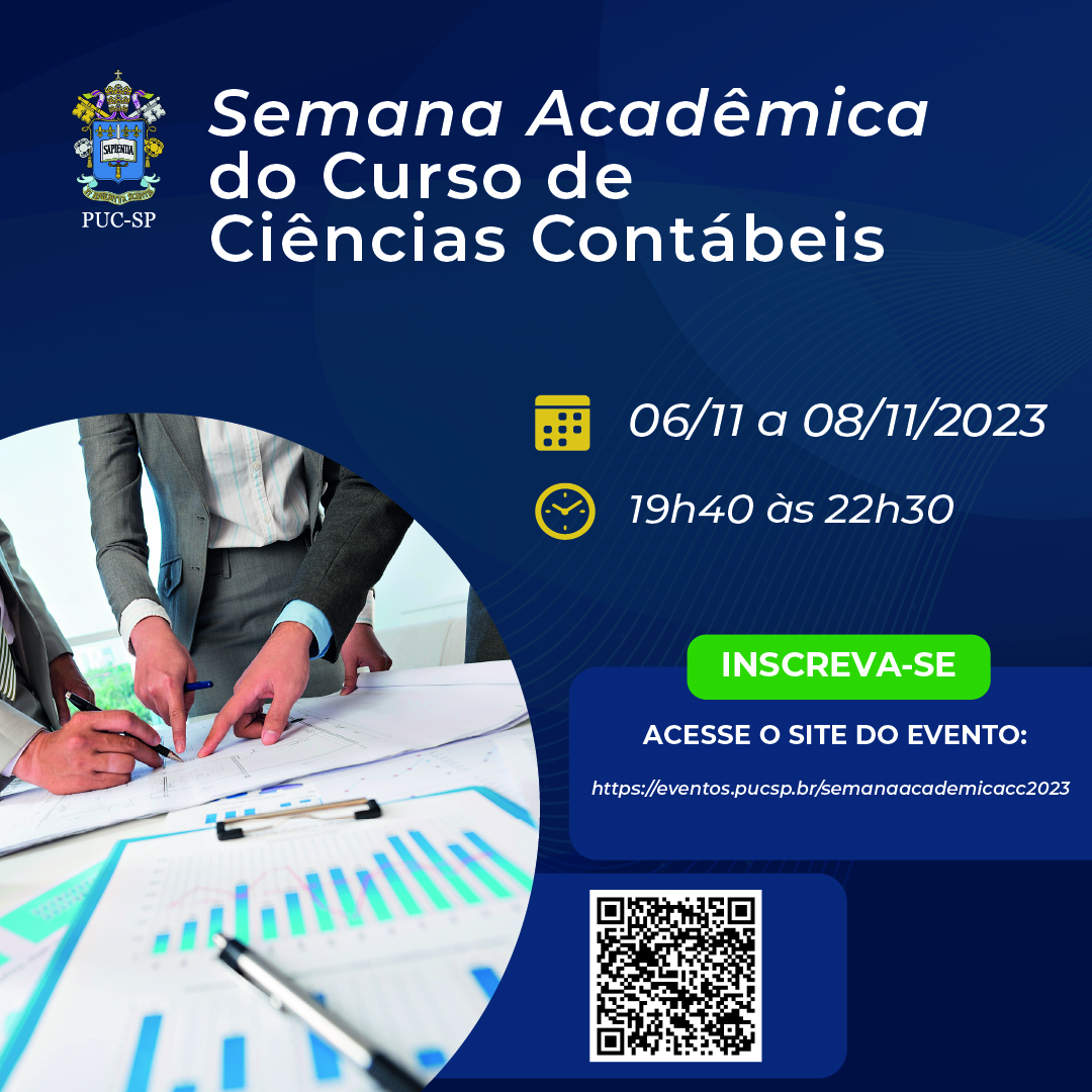 Conheça a programação da Semana Acadêmica do Curso de Ciências Contábeis 2023, que se realiza entre os dias 6 e 8/11, no campus Monte Alegre.