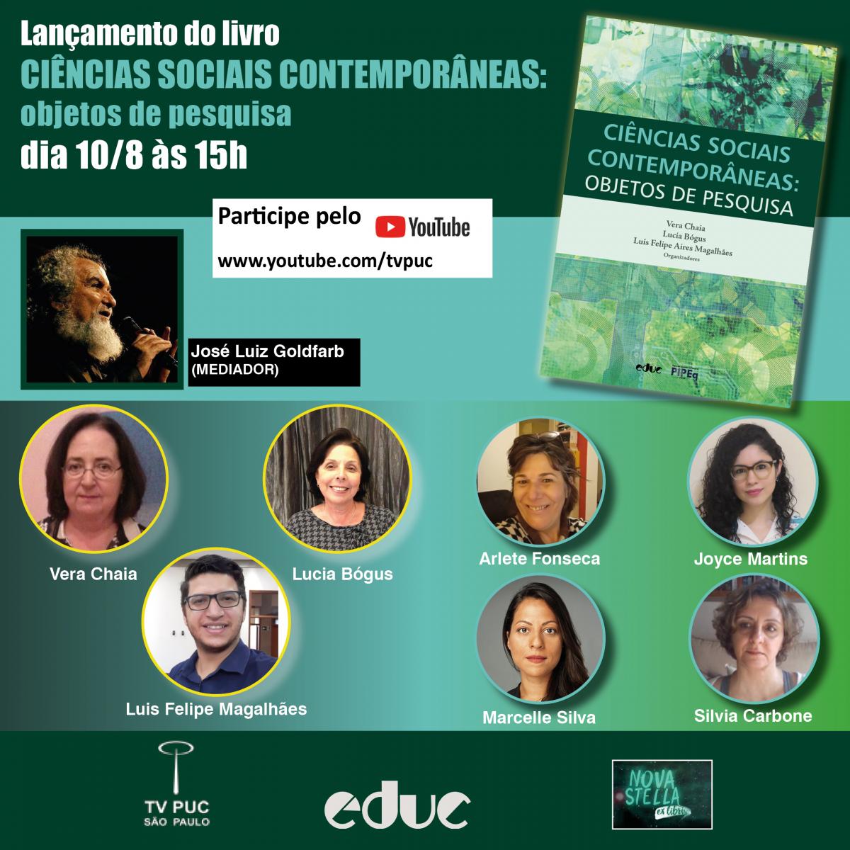 A Educ lança o livro Ciências Sociais Contemporâneas: objetos de pesquisa, dia 10/8, às 15h. A obra foi organizada por Vera Chaia, Lucia Bógus, Luís Felipe Aires Magalhães (orgs.), que participam do evento, ao vivo, no canal da TVPUC no youtube.