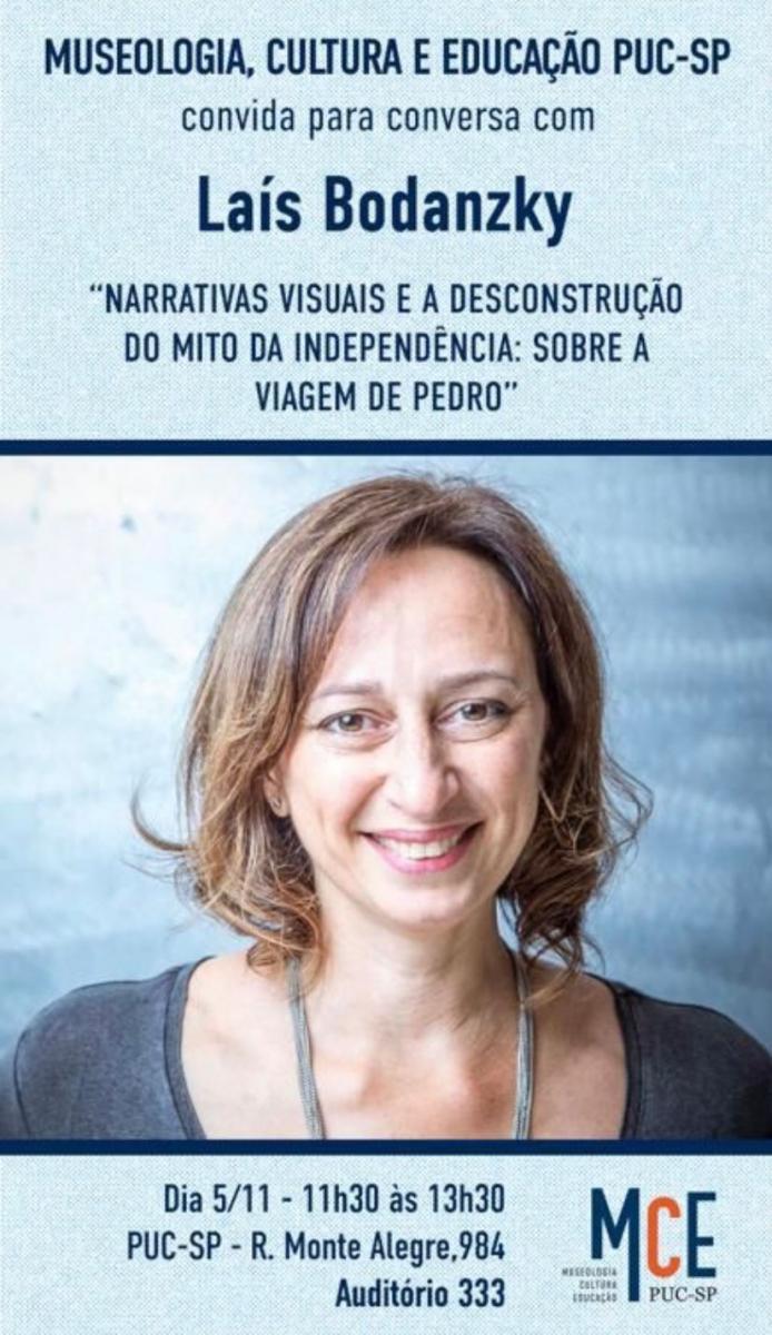O curso de Museologia da PUC-SP recebe a cineasta Laís Bodanzky para uma conversa aberta ao público, sábado, 5/11. A conversa tratará sobre a influência das imagens na construção do mito da Independência (e de outros mitos) e sobre a pesquisa de imagens e narrativas visuais para a produção do filme A Viagem de Pedro.