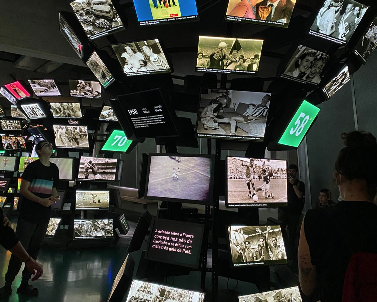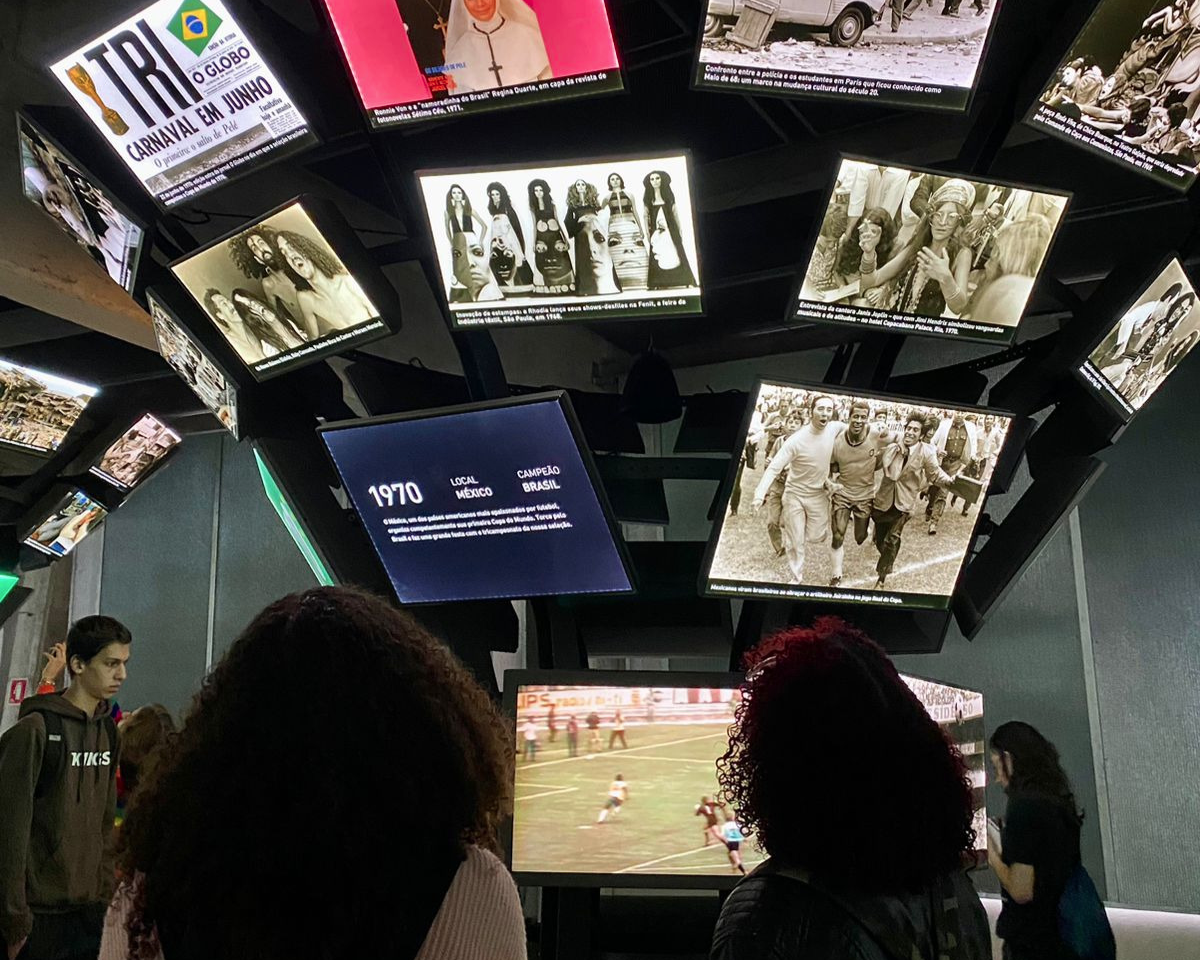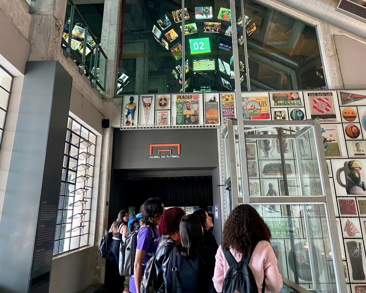 Atividade do curso de Jornalismo, no Museu do Futebol