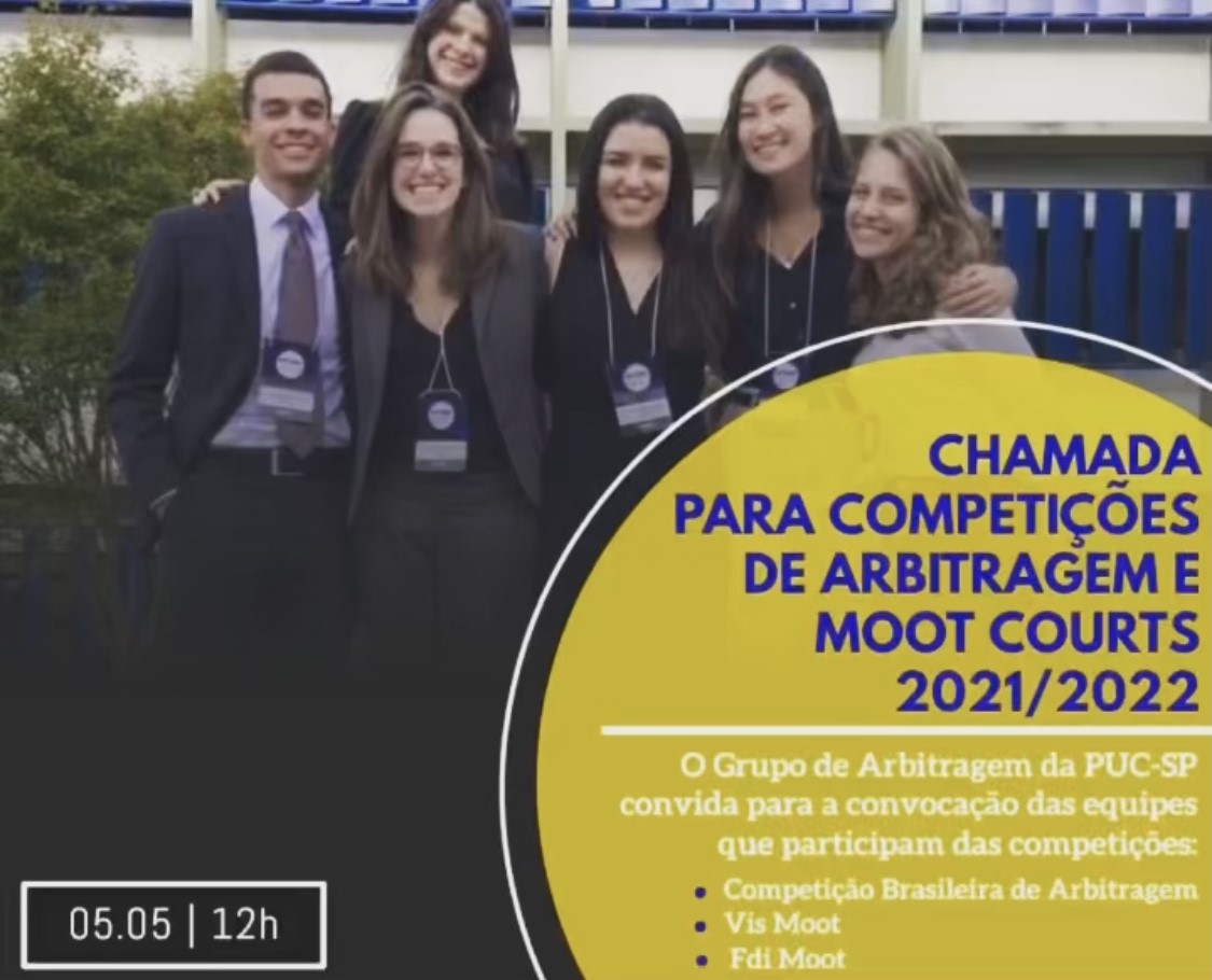 O Grupo de Estudos em Arbitragem e Compra e Venda Internacional realiza, dia 5/5, às 12h, reunião virtual para apresentar as competições de arbitragem e direito internacional das quais participa: Competição Brasileira de Arbitragem, Vis Moot e FDI Moot.