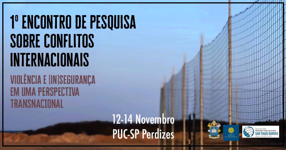 O Grupo de Estudos sobre Conflitos Internacionais (GECI), do Programa San Tiago Dantas de Pós-Graduação em Relações Internacionais da Unesp/Unicamp/PUC-SP, realizará o I Encontro de Pesquisa sobre Conflitos Internacionais (EPEC), de 12 a 14/11, no campus Monte Alegre. O tema do evento é Violência e (in)segurança em perspectiva transnacional. Clique aqui para saber mais.