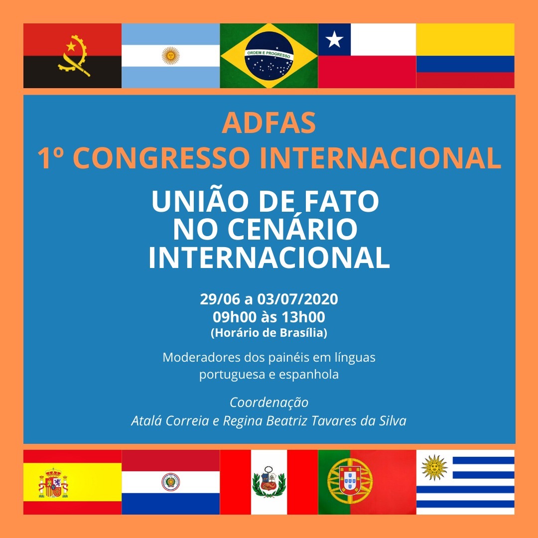 O tema único será a União de Fato no cenário internacional e contará com palestras de profissionais de dez países. São professores da América Latina (Argentina, Brasil, Chile, Colômbia, Paraguai, Peru e Uruguai), da Europa (Espanha e Portugal) e da África (Angola), além da participação de professores brasileiros.