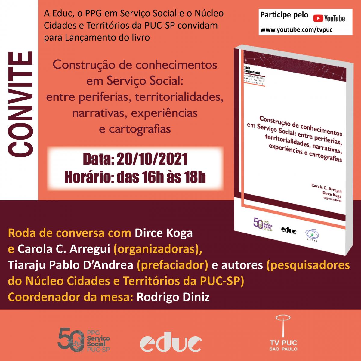 Dia 20/10, às 16h, a Educ lança o e-book Construção de conhecimentos em Serviço Social: entre periferias, territorialidades, narrativas, experiências e cartografias.