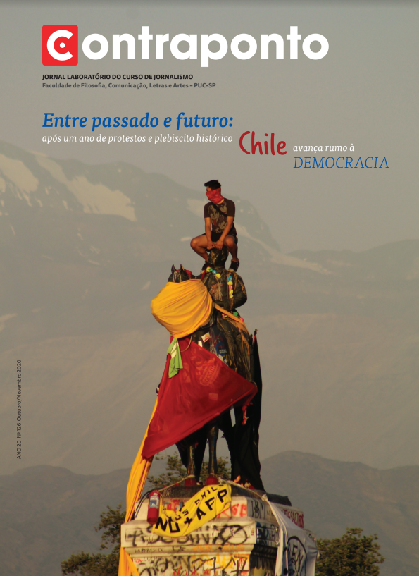 Para celebrar o aniversário de 20 anos, o Contraponto, jornal laboratório do curso de Jornalismo, acaba de publicar uma edição especial sobre o Chile. Com uma nova diagramação e o dobro do número de páginas, a publicação de número 126 contou com a colaboração da Universidad Austral de Chile. "A ideia de produzir uma edição especial do Jornal Contraponto foi amplamente aceita dentro curso. Nós estávamos acompanhando os recentes acontecimentos no Chile, desde os protestos iniciados no ano passado até a concretização do plebiscito, que ocorreu em outubro deste ano. As similaridades com o Brasil sempre foram pontos de pauta para os estudantes, queríamos trabalhar com a narrativa das ditaduras e aproveitar o momento de divulgação para relembrar um passado que precisa cada dia mais ser combatido", afirma a professora Anna Flávia Feldmann, editora responsável. Ela conta que a Universidad Austral de Chile participou com o envio de fotos e a elaboração do editorial chileno - tudo produzido por seus estudantes. "Nossa ideia primeiramente era ir ao Chile e levar as alunas e alunos da PUC-SP para conhecer a Universidade, mas com a pandemia fizemos um projeto remoto".