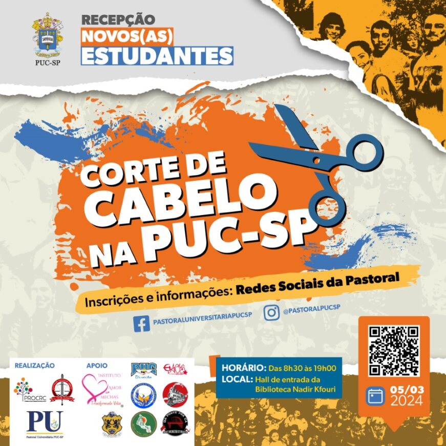 A Pastoral Universitária (PU), em parceria com o Instituto Amor em Mechas, promove a ação social Corte de Cabelo na PUC-SP na Semana da Recepção dos novos estudantes. Toda a comunidade acadêmica está convidada para a atividade.