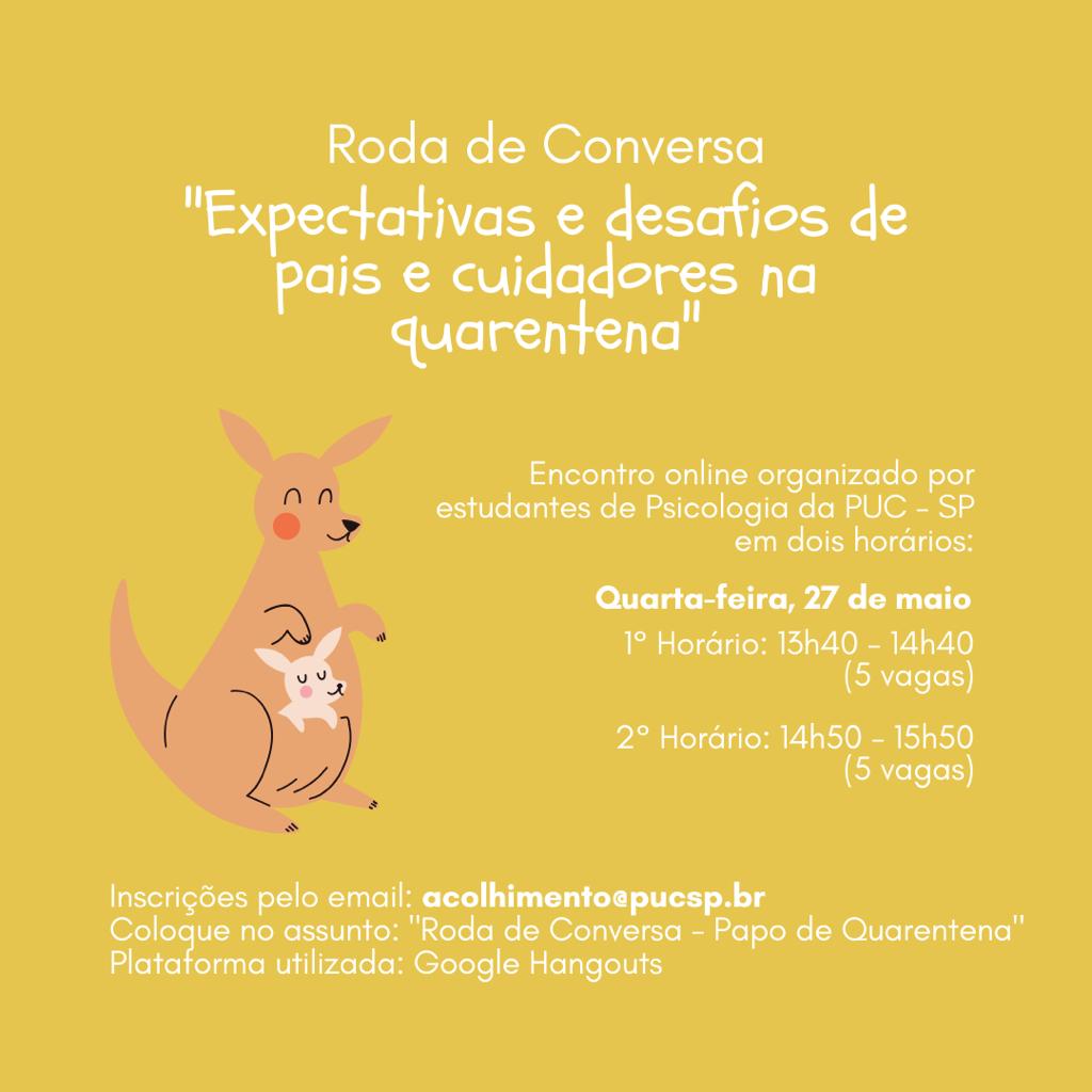 As expectativas e os desafios de pais e cuidadores na quarentena serão tratadas na próxima Roda de Conversa, encontro online organizado por estudantes do curso de Psicologia, com apoio da Pró-Reitoria de Cultura e Relações Comunitárias (ProCRC) e da profa. Edna Kahale (Psicologia).