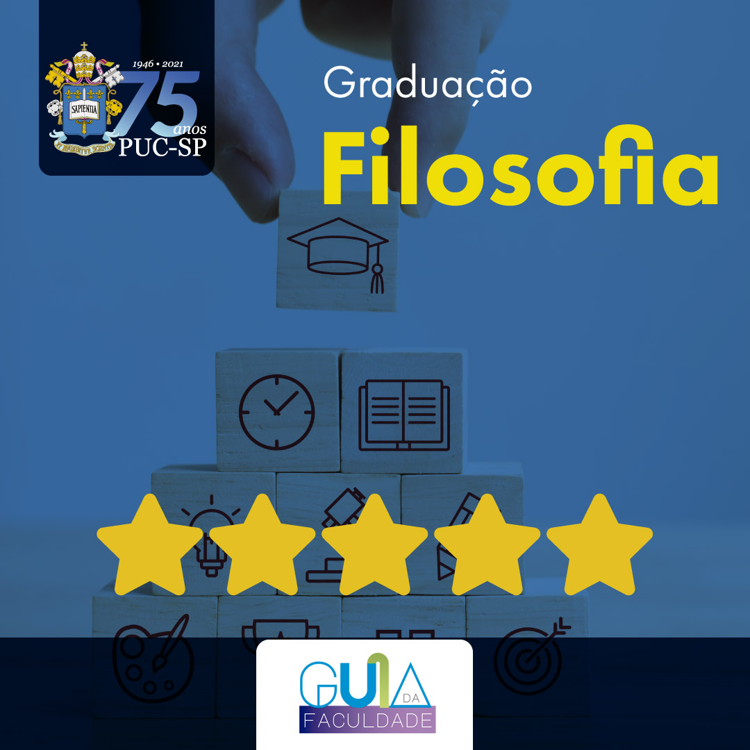 O curso de Filosofia da PUC-SP está entre os melhores do país, segundo o Guia da Faculdade 2021. A graduação é a única do Estado de São Paulo com cinco estrelas entre as instituições de ensino superior privadas.