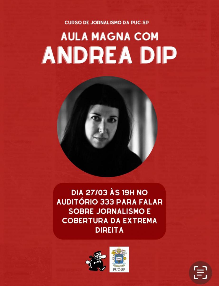 O curso de Jornalismo da PUC-SP promove uma palestra com a jornalista Andrea Dip. O evento tem como objetivo abordar a cobertura jornalística da extrema direita.