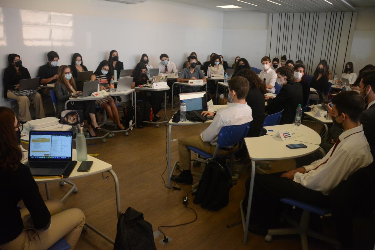 O curso de Relações Internacionais realizou no dia 27/5 o Cenários Beta, programa de práticas simuladas totalmente em inglês para estudantes da Universidade. O comitê simulado foi o Conselho de Direitos Humanos da ONU e teve como tema A Guerra na Ucrânia. A atividade ocorreu no âmbito do Projeto Cenários, programa de extensão do curso graduação em RI para realização de simulação de organizações internacionais, sob a coordenação do prof. Arthur Murta.