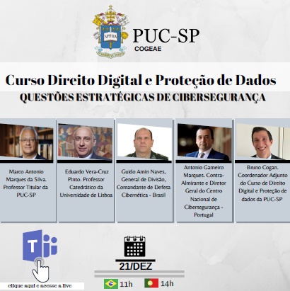 Dia 21/12, às 11h, será realizado online o curso Direito digital e proteção de dados: questões estratégicas de cibersegurança.