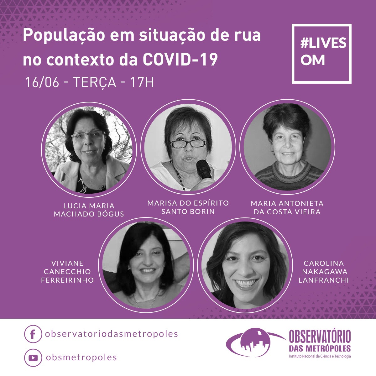 O Observatório das Metrópoles (Pós em Ciências Sociais) realiza neste dia 16/6, às 17h, mais uma live, desta vez com o tema População em situação de rua no contexto da COVID-19.