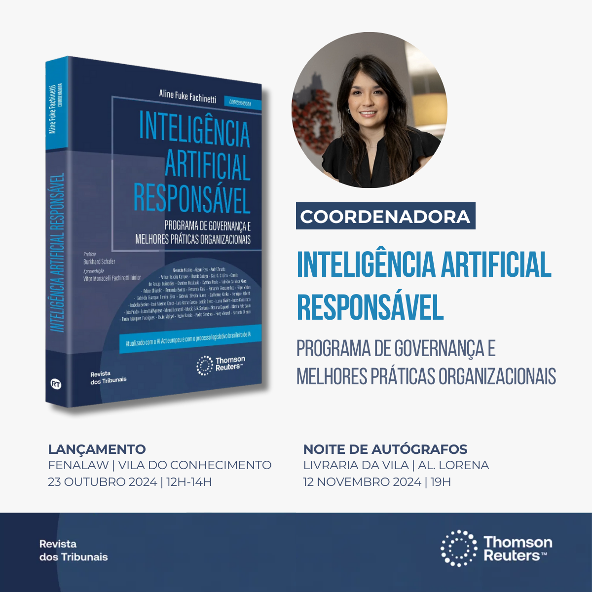A obra Inteligência Artificial Responsável (Thomson Reuters), reúne especialistas para discutir os desafios éticos e regulatórios da IA, com prefácio do professor Burkhard Schafer (Universidade de Edimburgo - Reino Unido).