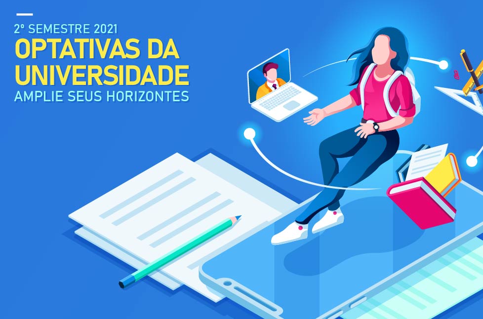 Estão abertas, até 28/5, as inscrições para as Disciplinas Optativas Temáticas e da Universidade - 2º Semestre de 2021. Como nos semestres anteriores, os estudantes poderão obter, assim, maior flexibilidade e protagonismo em sua formação acadêmica, com livre escolha entre disciplinas optativas/eletivas ofertadas por diversos cursos, nas mais variadas áreas.