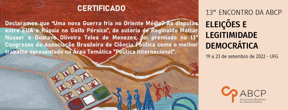 O artigo Uma nova guerra fria no Oriente Médio? As disputas entre EUA e Rússia no Golfo Pérsico acaba de ser premiado no 13º Encontro da Associação Brasileira de Ciência Política (ABCP).