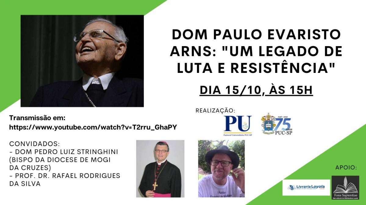 A Pastoral Universitária promove, dia 15/10, às 15h, o evento Dom Paulo Evaristo Arns: um legado de luta e resistência.