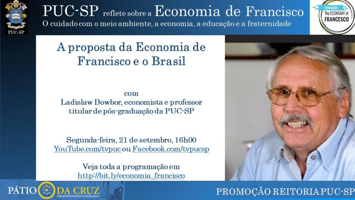 No dia 21/9, às 16h, o prof. Ladislau Dowbor participa do evento PUC-SP Economia de Francisco: o cuidado com o meio ambiente, a economia, a educação e a fraternidade. Promovido pela Reitoria e pelo Núcleo Fé e Cultura, o evento oferece uma série de encontros até o mês de novembro. Clique aqui para ver a programação completa.