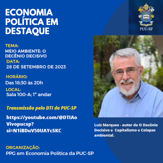 O Programa de Pós-Graduação em Economia Política da PUC-SP promove o evento Economia Política em Destaque: Meio Ambiente e o Decênio Decisivo.