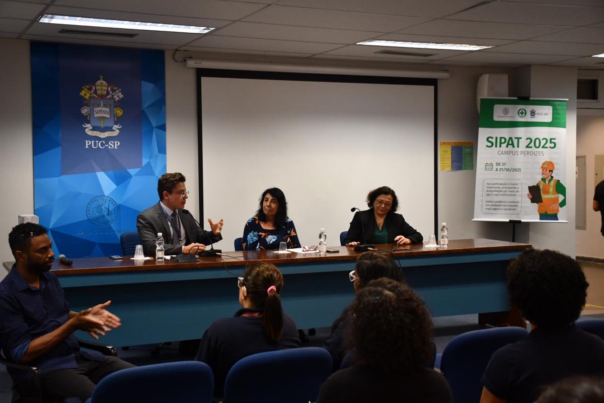 A Pontifícia Universidade Católica de São Paulo deu início, na segunda-feira passada (27/10) à Sipat 2025 – Semana Interna de Prevenção de Acidentes de Trabalho, no Campus Monte Alegre. A cerimônia de abertura ocorreu no auditório 100 do Edifício Reitor Bandeira de Melo e contou com a presença de colaboradores da Universidade, da equipe da Cipa 2025 (Comissão Interna de Prevenção de Acidentes) e da Gerência de Desenvolvimento Humano da Fundação São Paulo (FUNDASP).
