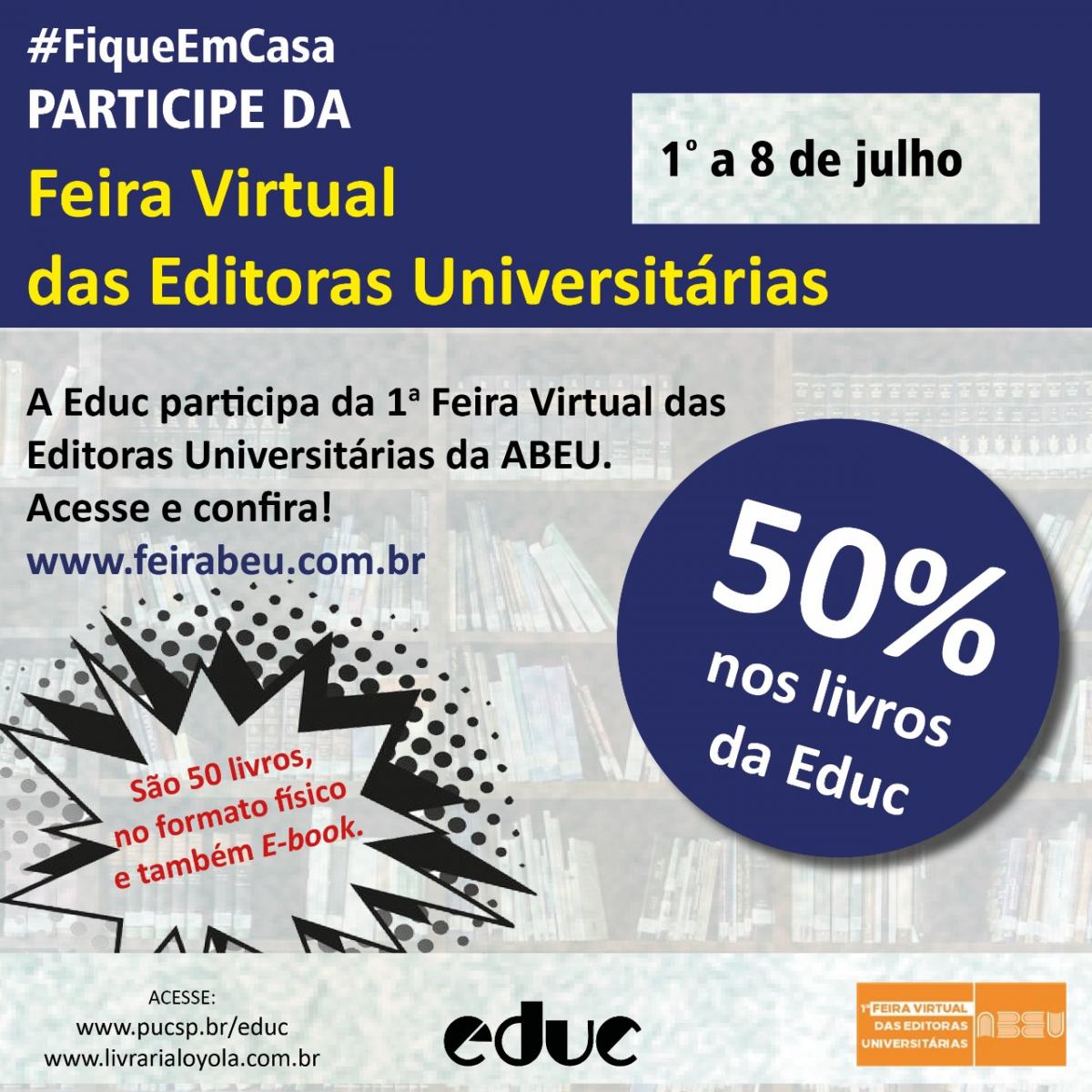 A Educ participa da Feira Virtual das Editoras Universitárias, de 1º a 8/7. Esta é a primeira vez que o evento acontece online e haverá venda de livros físicos e de e-books.