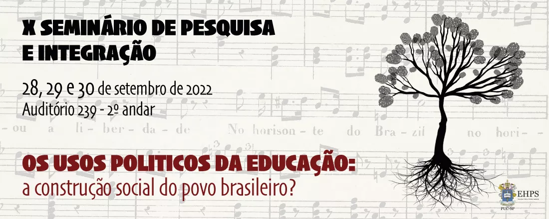 O Pós em Educação: História, Política, Sociedade (EHPS) realiza, de 28 a 30/9, o X Seminário de Pesquisa e Integração, com o tema Os usos políticos da educação: a construção social do povo brasileiro?. A atividade acontecerá presencialmente, no campus Monte Alegre, auditório 239 (2º andar, prédio Novo), e também online.