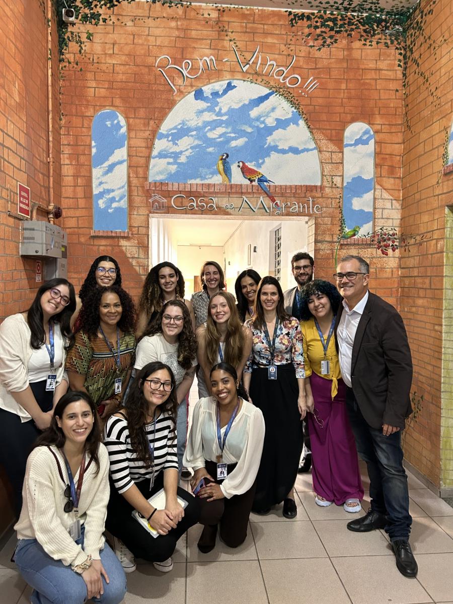 Os advogados Vitor Nery, Matteo Giannella e Ieda Souza, as assistentes sociais Marilene Geronimo e Silvanice Silva, acompanhados dos estagiários dos cursos de Direito e Serviço Social da PUC-SP, além do prof. André Geraldes, tiveram o privilégio de serem guiados pela Isabela para conhecerem as instalações da instituição, voltadas à inserção laboral, ensino do idioma português, cuidados na área da saúde e prestação de serviços jurídicos aos imigrantes e refugiados da cidade de São Paulo. Ao longo do tour acadêmico, a equipe do Escritório encontrou o padre Paolo Parisi, uma das grandes referências no campo dos direitos dos imigrantes e refugiados, e que desenvolve um reconhecido trabalho à frente da Missão Paz.