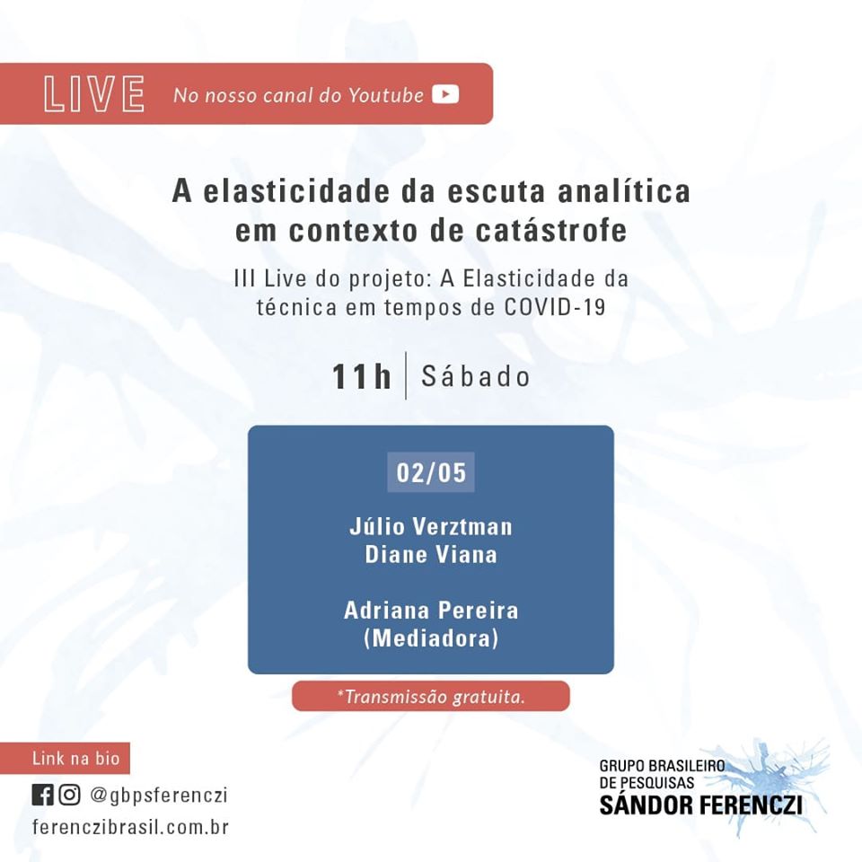 A elasticidade da escuta analítica em contexto de catástrofe é o tema do debate online que será realizado dia 2/5, às 11h. Clique aqui ou veja abaixo os participantes e como assistir.